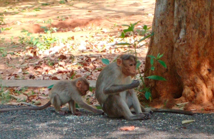 Description: Common Name: Indian Monkey | Binomial Name: Macaca radiata | Tamil Name: குரங்கு | Family: Cercopithecidae | Photo credit: Gunavathi M | Location: In front of Ponni Hostel, BDU.