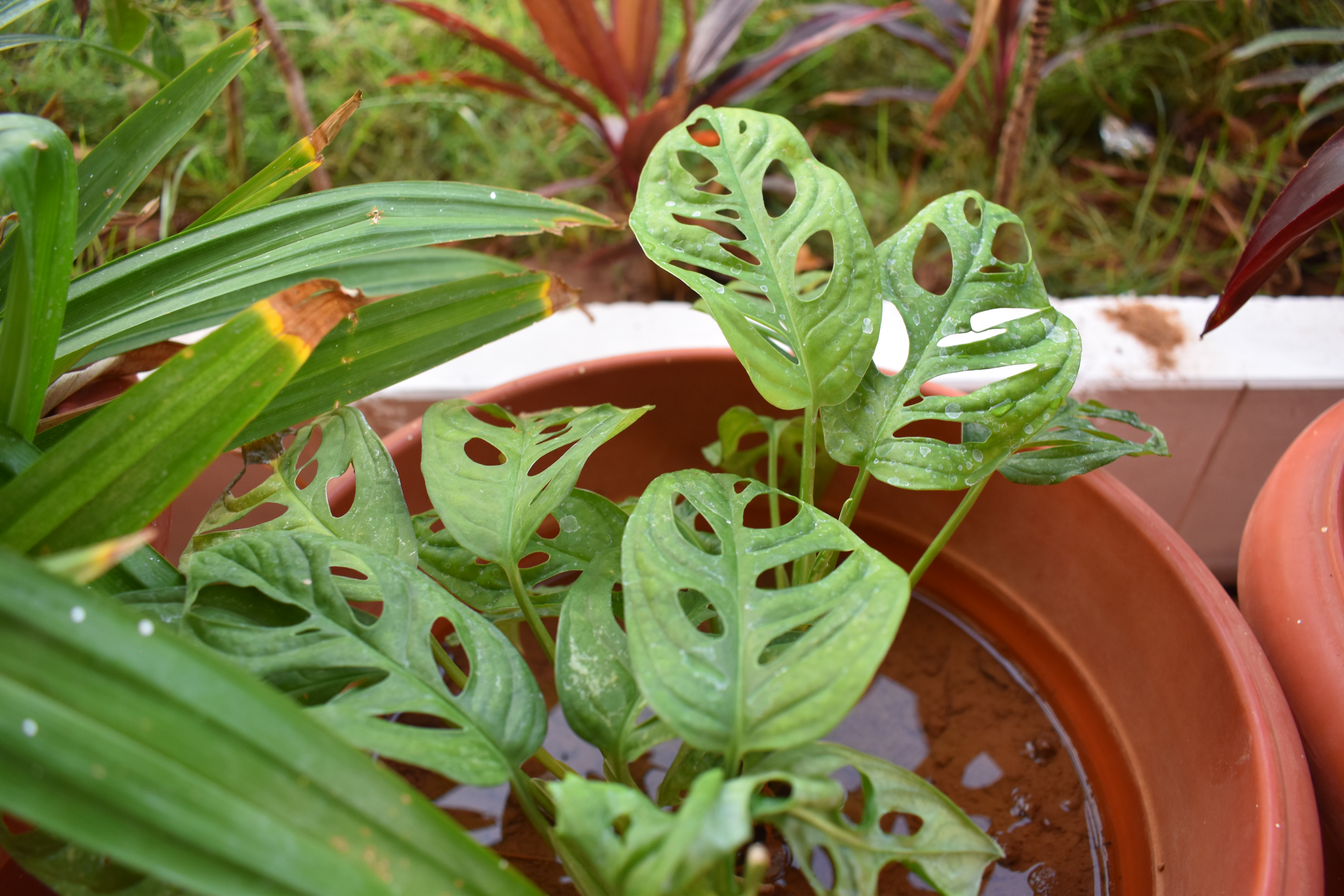| Description: | Common Name: Swiss Chinese Plant | Binomial Name: Monstera deliciosa Liebm. | Tamil Name: அசுரபழம் | Family: Araceae | Photo Credit: Akash K | Location: BDU Guest House |