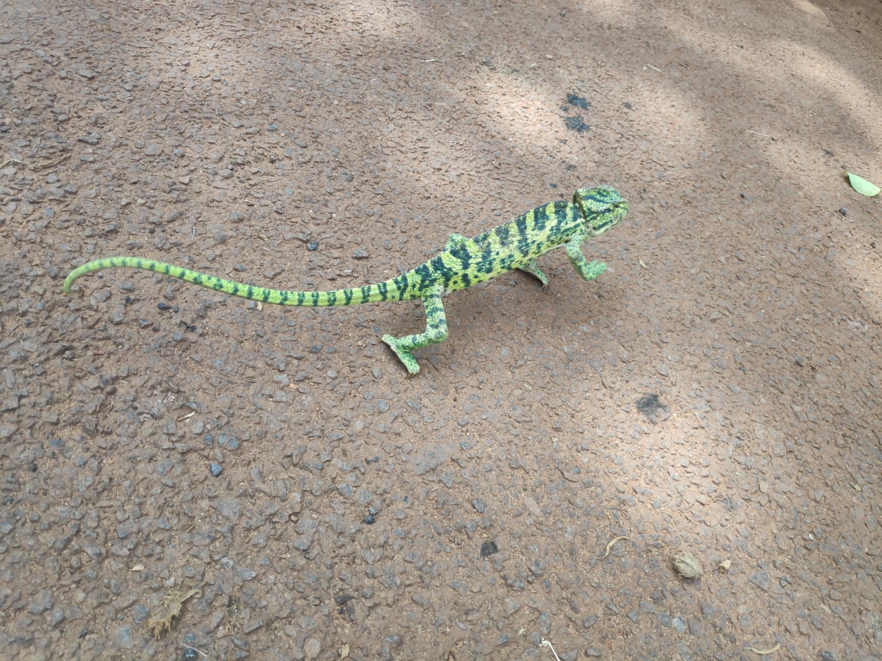 | Description: | Common Name: Flap-necked chameleon | Binomial Name: Chamaeleo dilepis | Tamil Name: பச்சோந்தி | Family: Chamaeleonidae | Photo Credit: Gayathri S | Location: Entrance of Central Library, BDU |