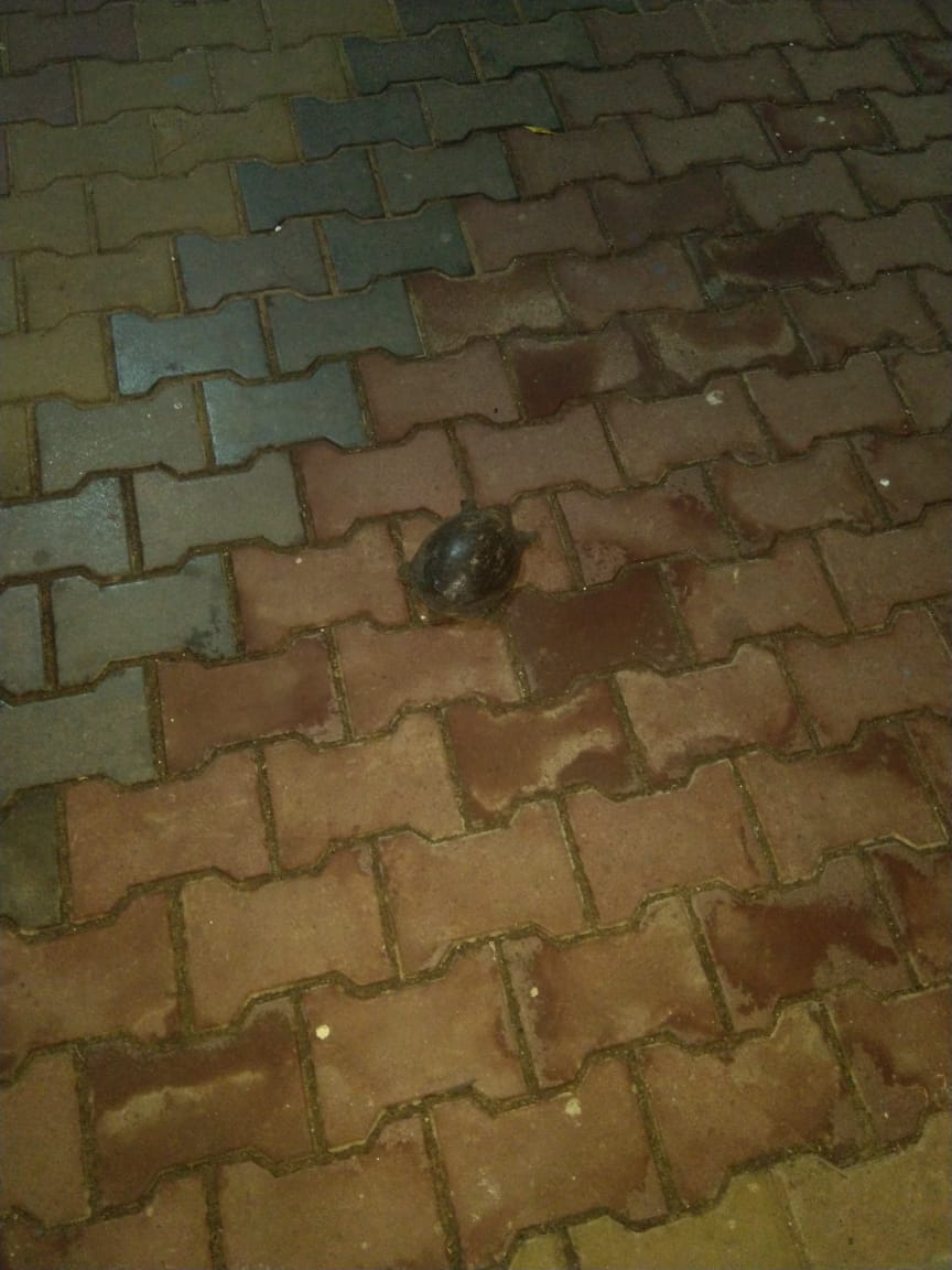 | Description: | Common Name: Indian flapshell turtle | Binomial Name: Lissemys punctata | Tamil Name: பால் ஆமை | Family: Trionychidae | Photo credit: Shanmuganathi A | Location: Opposite to Department of English, BDU. |