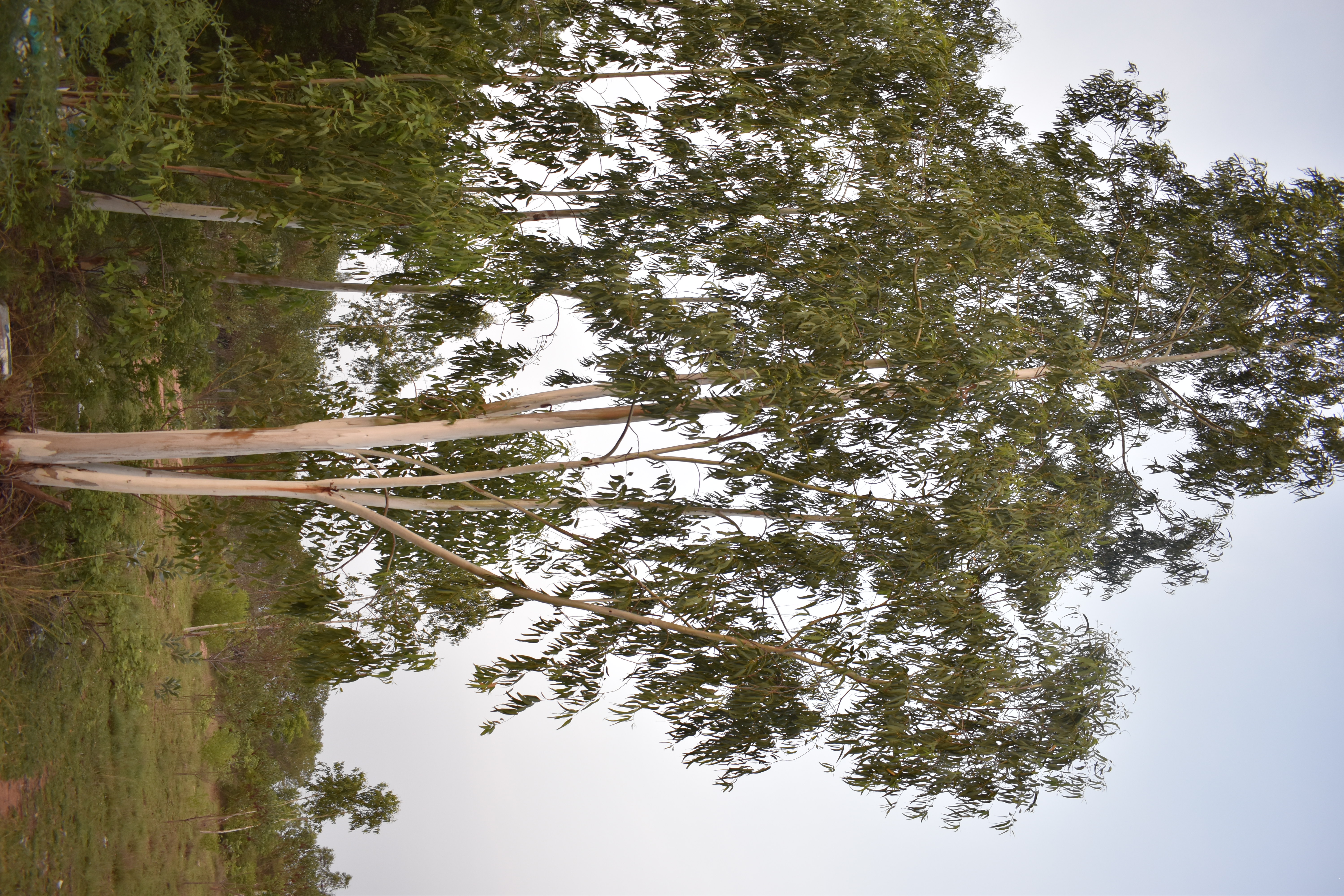 Description: Common Name: Tasmanian blue gum | Binomial Name: Eucalyptus globules Labill. | Tamil Name: தைலமரம் | Family: Myrtaceae | Photo Credit: Mohammad Abbas L | Location: Backside of Hostel Office, BDU