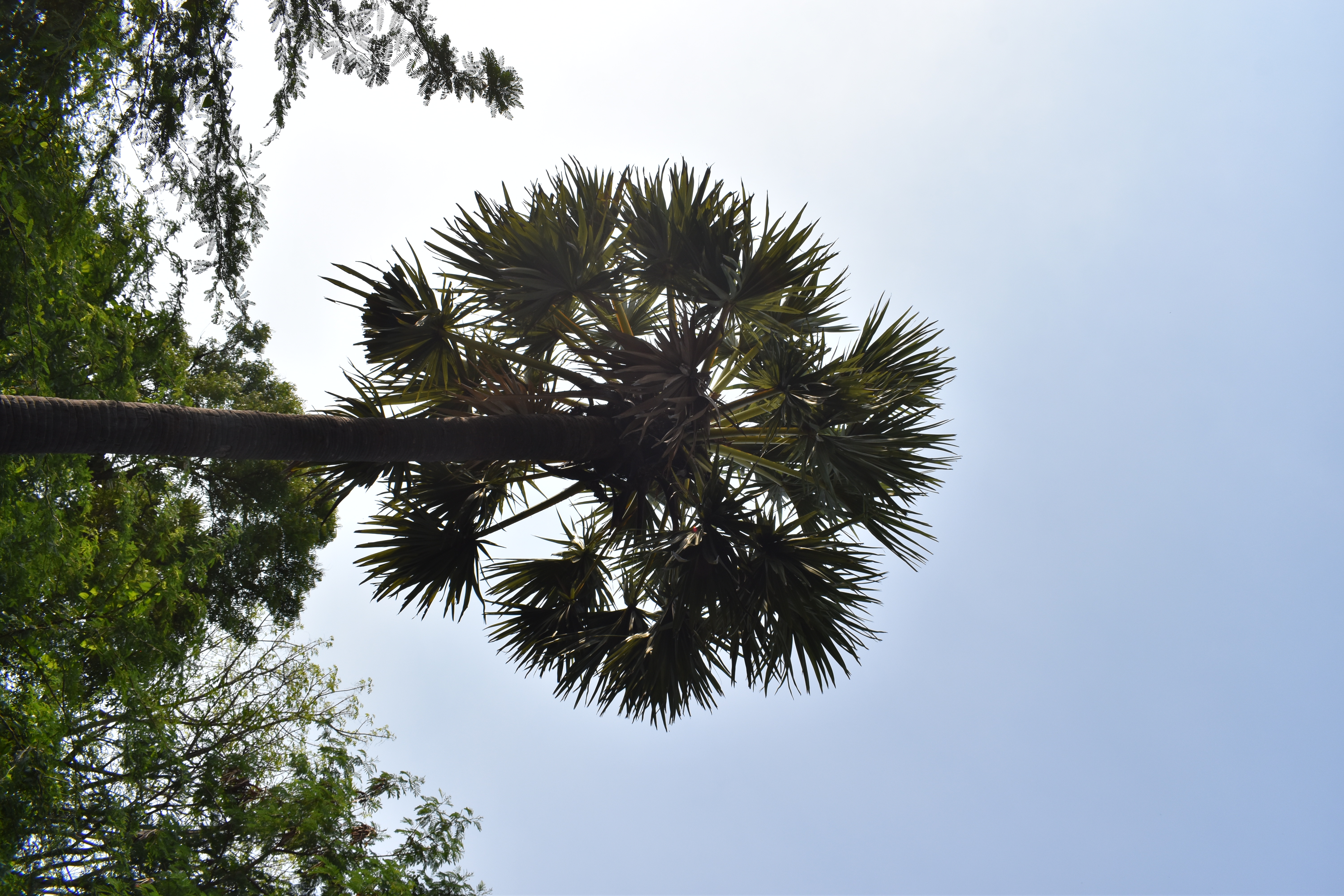 Description: Common Name: Doub palm | Binomial Name: Borassus flabellifer L. | Tamil Name: பனை | Family: Arecaceae | Photo credit: Mohammad Abbas L | Location: Backside of Porunai Hostel, BDU