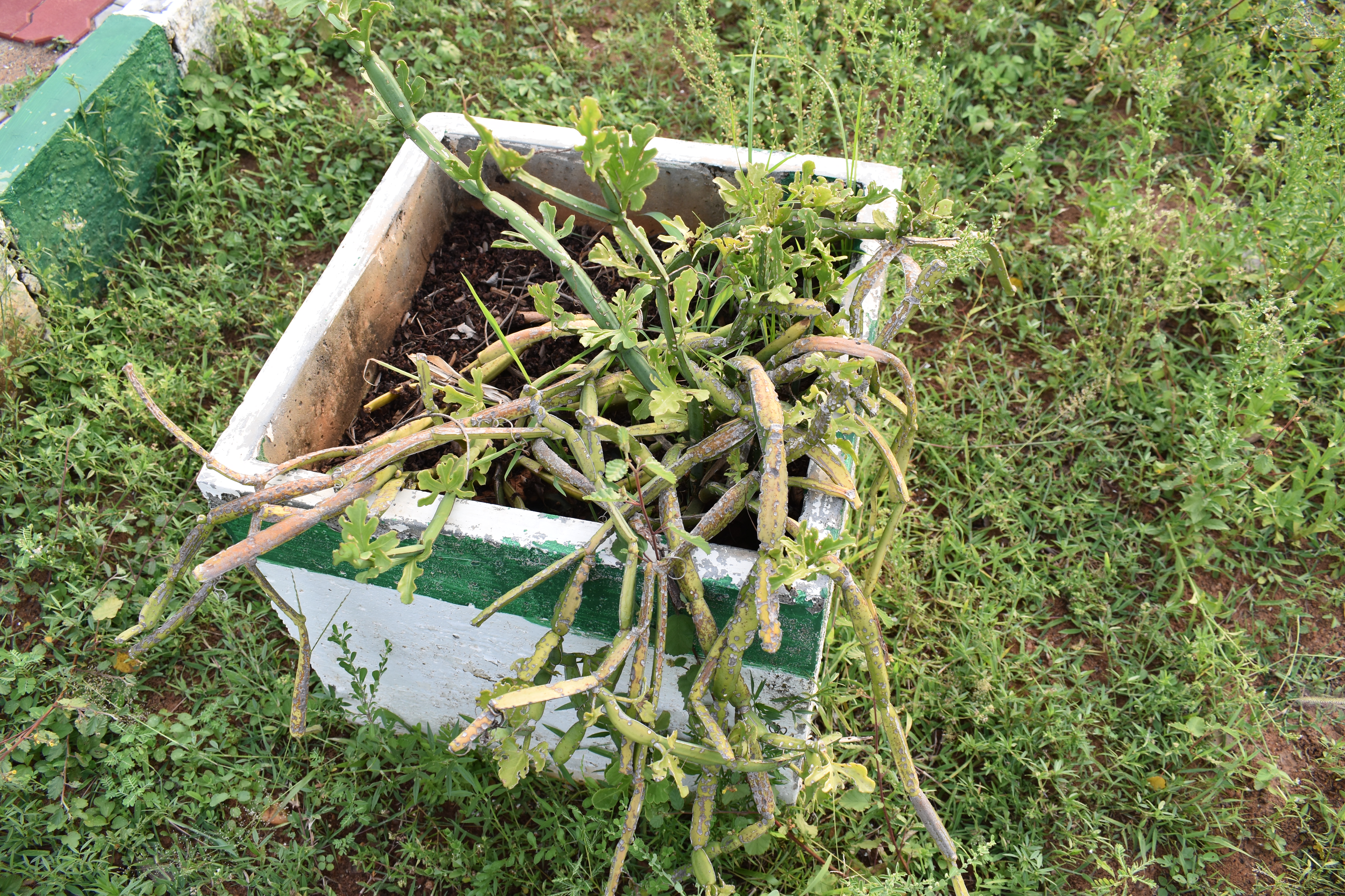 Description: Common Name: Adamant creeper | Binomial Name: Cissus quadrangularis L. | Tamil Name: பிரண்டை | Family: Vitaceae | Photo credit: Mohammad Abbas L | Location: Herbal Garden, BDU.